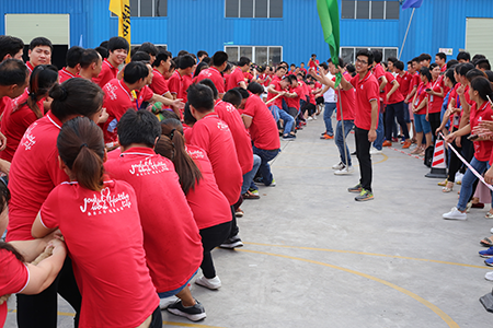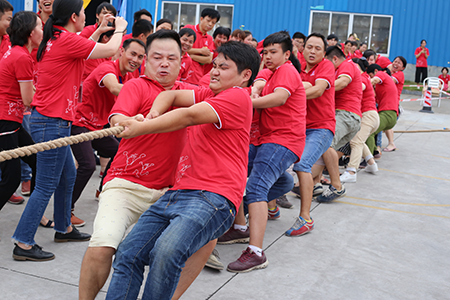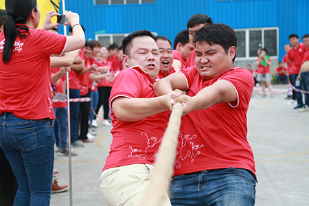 活動現(xiàn)場,沒有參加比賽的員工自發(fā)組成啦啦隊,在旁邊齊聲吶喊,為己方隊員加油助陣。最終,氣勢強勁的“二車間&倉儲聯(lián)隊”獲得冠軍,“飛翔隊”獲得亞軍,辦公室“玩美隊”獲得季軍。