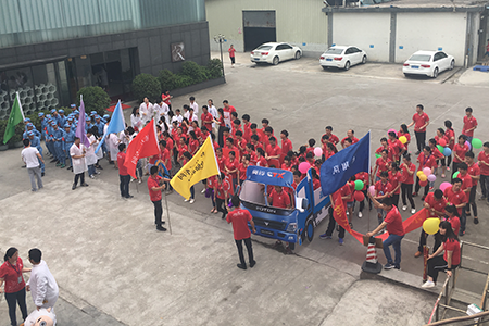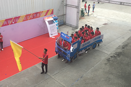 緊接著,一大幫來自“棟方二車間、倉儲聯(lián)隊”的老司機們,駕駛著“棟方奧鈴號運輸車”穩(wěn)穩(wěn)向前,喊出他們“追求卓越,不斷創(chuàng)新”的決心。