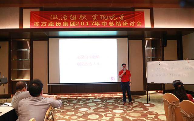 2017年7月30日至31日,“激活組織、實(shí)現(xiàn)蛻變、重寫未來——棟方股份集團(tuán)2017年中總結(jié)研討會”在廣州白水寨嘉華溫泉酒店順利召開。棟方股份集團(tuán)董事長唐新明先生、集團(tuán)產(chǎn)業(yè)鏈投資管理公司總經(jīng)理方珉先生、公司高層領(lǐng)導(dǎo)、各子公司領(lǐng)導(dǎo),以及公司中層管理人員悉數(shù)出席會議。上午9時會議正式開始,本次研討會由人事行政中心副總監(jiān)周金桃主持,棟方股份集團(tuán)董事長唐新明先生作開場致辭。
