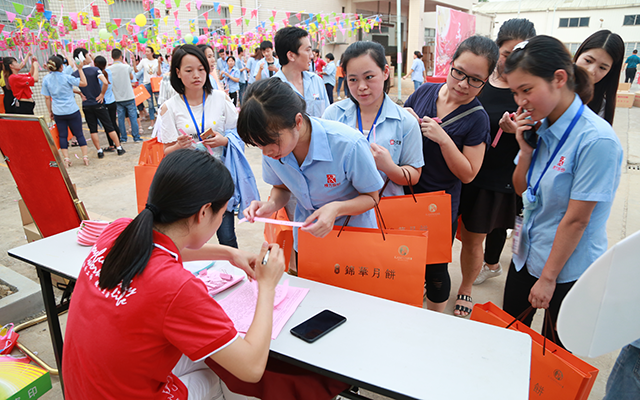 頒獎(jiǎng)結(jié)束后,是大家翹首以盼的月餅派發(fā)環(huán)節(jié),憑票兌換,秩序井然,現(xiàn)場(chǎng)一片溫情、歡喜洋溢。