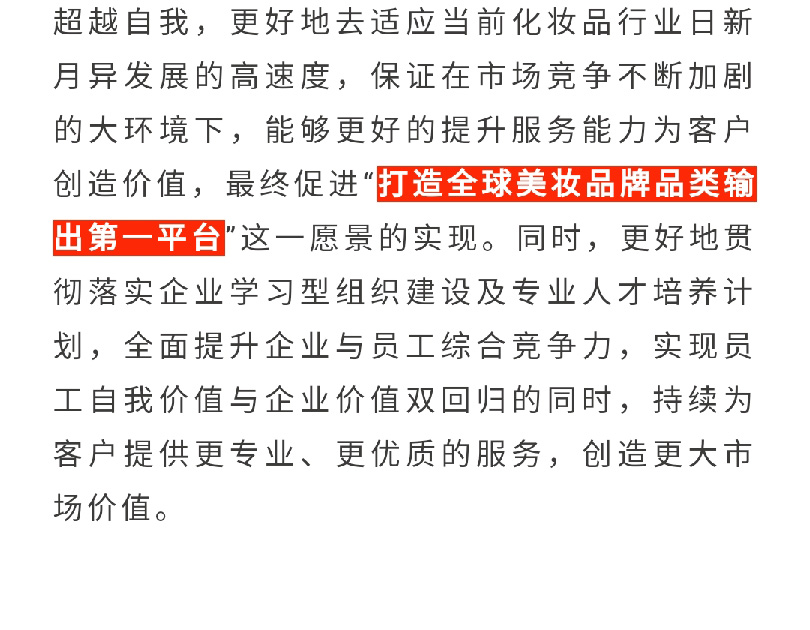 企業(yè)愿景: 打造全球美妝品牌品類輸出第一服務(wù)平臺